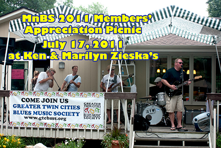 Everyone is welcome to join in the fun at this year's picnic. This is a social-mixer for the Blues Society and people interested in our group. All guests will be issued nametags upon arrival so that we can all get to know each other. Music will be provided by the Good Time Willy Band along with Boom Boom Steve V, who we hope will reprise energetic and acrobatic performance of last year (See Picnic 2010 Slideshow). Harmonica Curtis Blake will be cooking his famous Chicken Andouille Okra Gumbo. Ken says there will also be some brats on hand. Everyone is encouraged to bring their own beverages, a lawn chair, your instruments if you play and a side dish to share. Starting time is 1pm. The band begins at 2pm. There will be an open jam and bonfire from 6 to 9 pm. Please submit your RSVP by July 8: RSVP Form See the Map to the Zieska's home.