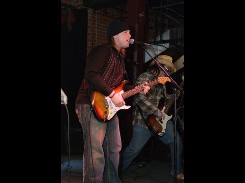 Joe Byrnes & Brandon Scott Sellner at the Stevie Ray Vaughn Shrine in Tater Red's